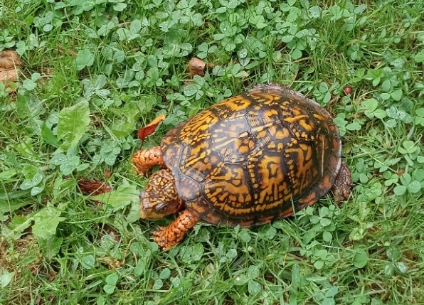 I was driving down my little country road, came around a turn and there in the middle of the road was a big box turtle.