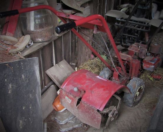 After finally getting the mud dried up I was merrily tilling away and stopped to rake a bit. When I started the tiller again it took right off as usual, ran a few seconds, and started going “put put put” and belching black smoke. I shut it off and ran for hubby.