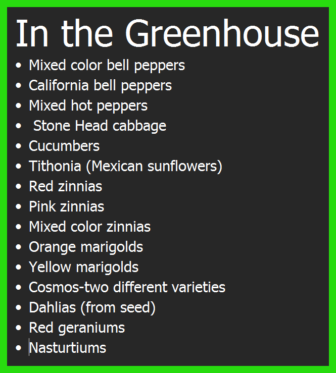 I grow all my bedding plants, both flowers and veggies, in my little greenhouse. Today I spent most of my time in there planting and organizing.