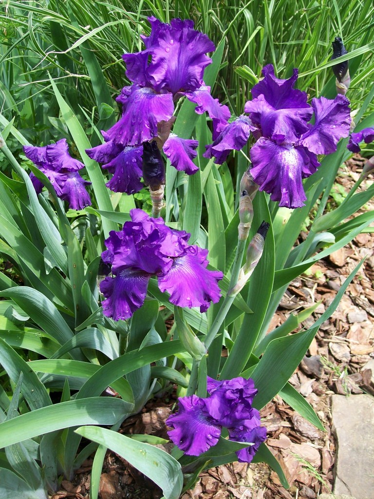 Bearded iris are so finicky when it comes to their favorite place to bloom and prosper. I have one group of a beautiful purple variety that seems to be very happy. Of course it would be the case that they are growing where I really don’t want them. I stuck some there as a temporary holding area and they took off!